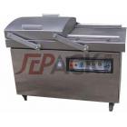 单室真空包装机 嘉拓单室真空包装机 单室真空包装机JZK-500 技术参数型 号del JZK-500电源电:220V/50HZ 功率: 0.75kw 压强: <0.66KPa 真空室尺寸: 440×420×115mm 热封条有效尺寸: 400×13mm 抽气速度: 5.5L/S 拍气量: 20m3/hour 重量: 120kg 外型尺寸(LxWxh): 590×670×1070mm 单室真空包装机以塑料复合薄膜或塑料铝箔复合薄膜为包装材料,对固体、液体、粉状、糊状,糊状的食品粮食、果品、酱菜、果脯、化学药品、电子组件、精密仪器表、稀有金属等进行真空包装。经包装后可有效地防止产品(商品)氧化、霉变、腐化、受潮,达到保质、保鲜、保味、保色,延长产品商品储存期限。 嘉拓单室真空包装机的特点如下: 1、排除了包装容器中的部分空气(氧气),能有效地防止食品变质。 2、采用阻隔性(气密性)优良的包装材料及严格的密封技术和要求,能有效防止包装内容物质的交换,即可避免食品减重、失味,又可防止二次污染在食品行业,单室真空包装机应用非常普遍,各种熟制品如鸡腿、火腿、香肠、烤鱼片、牛肉干等;腌制品如各种酱菜以及豆制品、果脯等各种各样需要保鲜的食品越来越多地采用真空包装。经过真空包装的食品保鲜期长,大大延长食品的保质期。