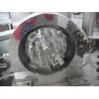 该机经进料口进入粉碎室,在粉碎室内被高速旋转的刀片冲击下,使物料甩向固定在机体上的齿圈,造成撞击、剪切,以及物料与物料,物料与刀片、齿圈间的相互碰撞、摩擦、剪切进行交替粉碎。粉碎后的物料,在粉碎室侧部的高速风叶产生的正压气流的推力作用下,小粉粒克服自重,随气流越过筛网,经排粉管进入旋风收集器经排料阀排出。一部分超细粉尘则由脉冲除尘器吸收,使废弃排放符合清洁环保要求,粉尘捕集袋截留的细粉能有效回收,降低了物料的损耗率。