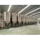 发酵系统说明:此阶段为啤酒酿造阶段。具体流程为:投料-糖化-过滤-煮沸(添加酒花)-回旋沉淀-麦汁热交换,然后泵入发酵罐进行发酵。啤酒发酵罐存储12-15天时间即可发酵储存成熟。