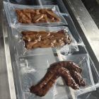 鸭货拉伸膜真空包装机促销,是全自动拉伸膜真空包装机集薄膜拉伸成型、装填物料、抽真空、充气、热封、打码喷码、分切等功能于一体在一台机械设备上具备了一条包装生产线的功能。 精确的切割系统:形式多样的气动切刀、液压冲刀、圆形切刀或线性切刀,既能光滑切边,也能锯齿状切边(此类包装可免易撕口),又可以圆角处理,可以切割多种形状。适用于各种休闲食品,牛肉干、豆腐干、红薯干、鱼仔、压缩饼干、月饼、培根火腿、鸭脖、鸡爪、中国台湾烤肠、粽子等。该包装方式能突出产品的优点、提高产品档次,便于运输。该设备操作性能强、适用性广、包装形式多样、工作效率高。广泛应用于各种食品、非食品包装领域。 操作方便的控制系统,便于设备的操作和控制。 精确的底膜成型和恒温牢固的密封:成型深度可根据产品的要求定制,并对边和角精确成型。封口压力均匀平衡,保证了真空产品的密封。对于复杂形状的包装,可以使用组合切刀实现精确的切割。