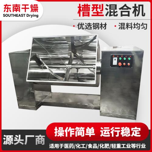 用于混合粉状或湿性物料,使不同比例主辅料混合均匀。本机与物料接触处均采用不锈钢制造,桨叶与桶身间隙小,混合无死角,搅料轴两端设有密封装置,能防止物料外泻,广泛适用于制药、化工、食品等行业。