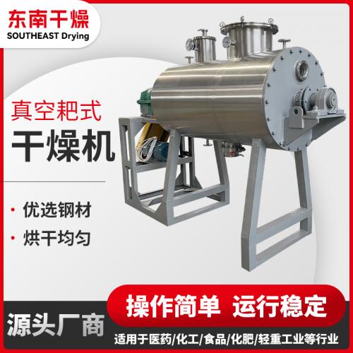 本机是一种新颖卧式间歇式真空干燥设备,湿物料经传导蒸发,带有刮板搅拌器不断清除热面上的物料,并在容器内推移形成循环流,水份蒸发后由真空泵抽出。