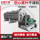 空心轴上密集排列着楔型中空浆叶,热介质经空心轴流经浆叶。单位有效容积内传热面积很大,热介质温度从常温到320℃,可以是水蒸汽,也可以是液体型:如热水、导热油等。间接传导加热,没有携带空气带走热量,热量均用来加热物料。热量损失仅为通过器体保温层向环境的散热。楔型浆叶传热面具有自清洁功能。物料颗粒与楔型面的相对运动产生洗刷作用,能够洗刷掉楔型面上附着物料,使运转中一直保持着清洁的传热面。浆叶干燥机的壳体为Ω型,壳体内一般安排二到四根空心搅拌轴。壳体有密封端盖与上盖,防止物料粉尘外泄而充分发挥作用。传热介质通过旋转接头,流经壳体夹套及空心搅拌轴,空心搅拌轴依据热介质的类型而具有不同的内部结构,以保证理想的传热效果。