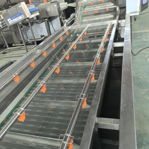本款全自动气泡清洗机采用高压气泡翻滚技术,配合喷淋清洗,可有效去除果蔬、海鲜等物料表面的泥沙、杂质和残留农药。设备配备循环过滤系统,节约用水,降低成本。整机采用 304 不锈钢制造,结构坚固,易于清洁。可根据客户需求定制不同规格,广泛应用于果蔬加工厂、中央厨房、净菜加工等行业。