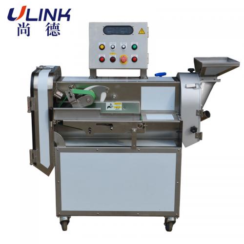 LV-607 可拆卸式多功能切菜机用途:叶菜类蔬菜切段切丝,根茎类蔬菜切丝、切丁、切片特性:1.输送带与切刀的转速采用变频调速,可调节蔬菜切割长度.2.本机为双机头设计,可同时工作,一机多用,省时省力. 此机安装了双保护开关,设计先进,员工操作更安全.1.输送带可拆卸,方便清洗,更加卫生.