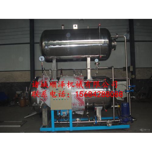 |  | [新品] 粽子杀菌锅 立式杀菌锅 高温高压杀菌锅(SZ-1000) 杀菌锅底部为贮水箱,当物料装入杀菌篮并关好锅门。循环泵把水箱中的杀菌水经过过滤器后抽出,并送到换热器中用蒸汽进行加热。从位于杀菌篮顶部的喷水管均匀地喷淋在所需杀菌的物料上面。由于循环量大,锅内温度非常均匀。PLC根据测得的杀菌水温度自动打开或关闭蒸汽阀门。