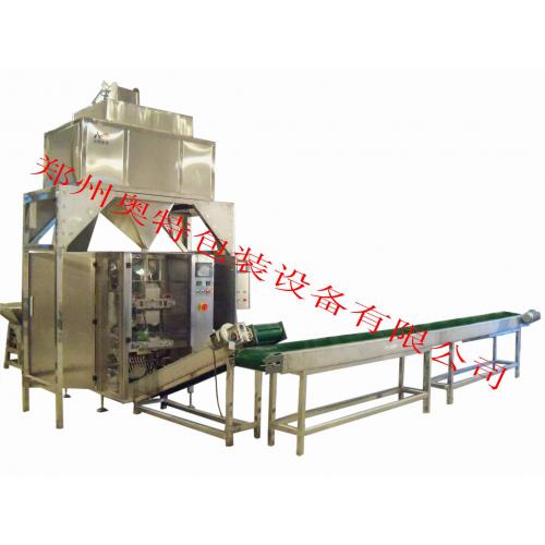 全自动颗粒称重计量包装线该包装线由物料提升机、计量包装机、爬坡输送机、成品输送机组成适合于糖果、巧克力、小饼干、花生、瓜子、大米、种子、开心果、咖啡豆、青豆、白砂糖、小饼干、食盐、鸡精、味精、干燥剂等颗粒状或小片状物料的自动化包装。