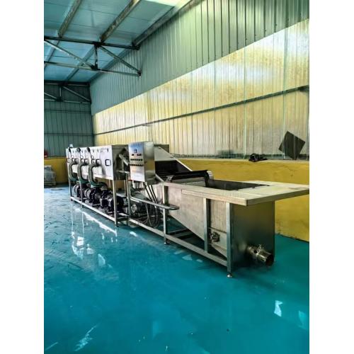 大姜清洗机由气泡清洗段、高压喷淋清洗段、成品挑选区等组成。大姜清洗机适用于生姜、芋仔等表皮附着泥沙较多的根类产品。