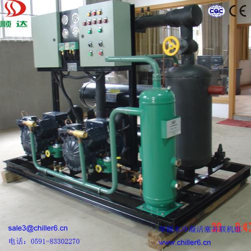|  | 中央并联机组 1、节约能耗 2、操作简便且易于维护 3、占地面积小 4、机型丰富,面向客户设计生产 5、冷凝器有风冷和水冷两种形式