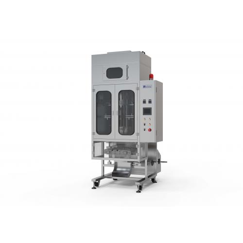 适用于含肉沫油脂混合物及酱液调料的包装,如:方便面酱包,蜂密,番茄酱,辣酱,火锅底料等。自动完成制袋、计量、充填、封合、分切、计数、热压批号或打印日期等功能。